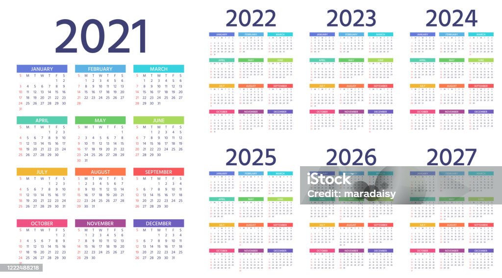 Calendar 2021 2022 2023 2025 2025 2026 2027 Years Week Starts