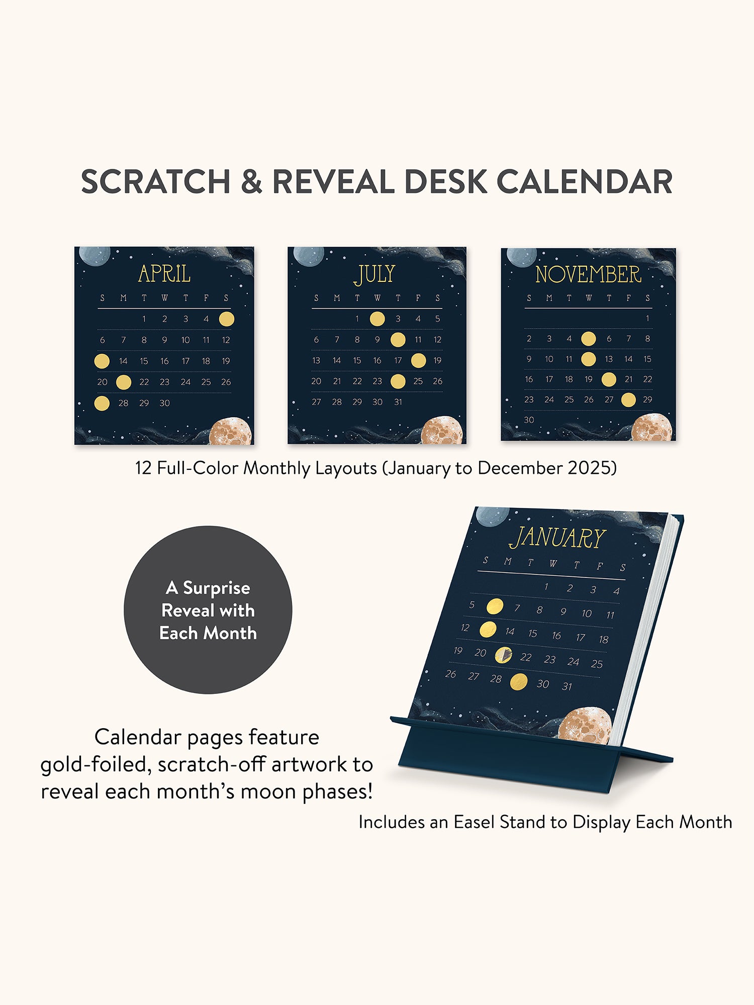2025 Moon Phases Scratch & Reveal Desk Calendar โ Studio Oh!